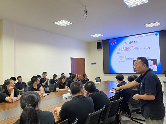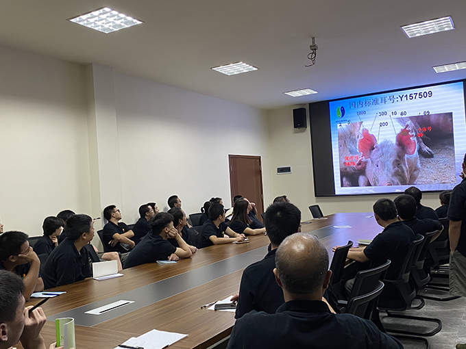 培訓會上,基地場長邱進杰就疫苗的分類、運輸、管理和使用,肌肉注射技術,國家通用標準耳缺識別方法等方面進行了全面、細致的講解。特別對疫苗保存、稀釋和使用方法,注射針頭的合理選擇、注射部位科學確認等方面的操作技術及注意事項作了重點介紹?;丶夹g指導、生物安全專家羅宗剛博士對培訓內(nèi)容有針對性地作補充和總結,并提出了相關管理要求。培訓會上,參訓員工還就國際通用耳缺識別方法等方面進行了互動和現(xiàn)場模擬識別,培訓達到了良好的預期效果。