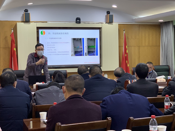 此次培訓(xùn)會(huì)由區(qū)畜牧中心生產(chǎn)區(qū)站陳勇站長(zhǎng)和重慶69國(guó)家生豬核心育種場(chǎng)場(chǎng)長(zhǎng)、國(guó)家生豬產(chǎn)業(yè)技術(shù)體系重慶試驗(yàn)站站長(zhǎng)蒲強(qiáng)主講,會(huì)上就豬常溫精液安全生產(chǎn)、母豬發(fā)情鑒定、生豬人工授精技術(shù)、常溫精液保存規(guī)范等生豬人工授精技術(shù)要點(diǎn)進(jìn)行了講授。