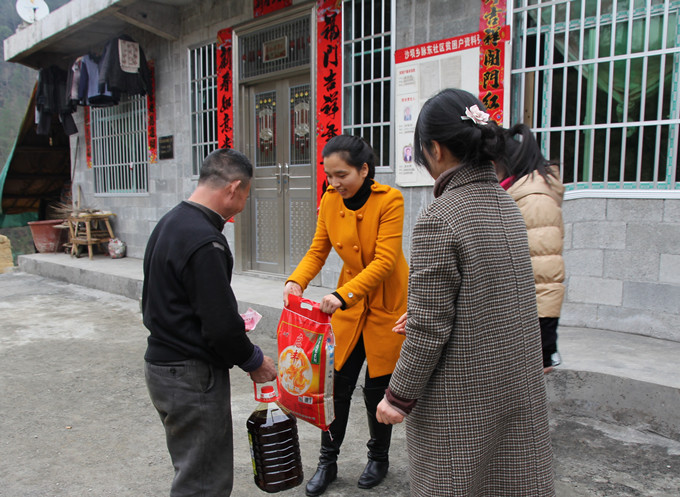 重慶69自落戶沙壩鄉(xiāng)脈東居委以來,新春給當(dāng)?shù)靥乩舭菽赀@個(gè)傳統(tǒng)已堅(jiān)持了10年。體諒到這些群眾都年紀(jì)偏大,行動不便,我們今年更是繞著山路將一份份愛心送到每個(gè)特困戶家里。